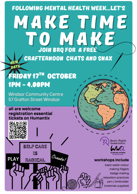 The team at Basic Rights Queensland invites YOU to Make Time to Make this Mental Health Week.