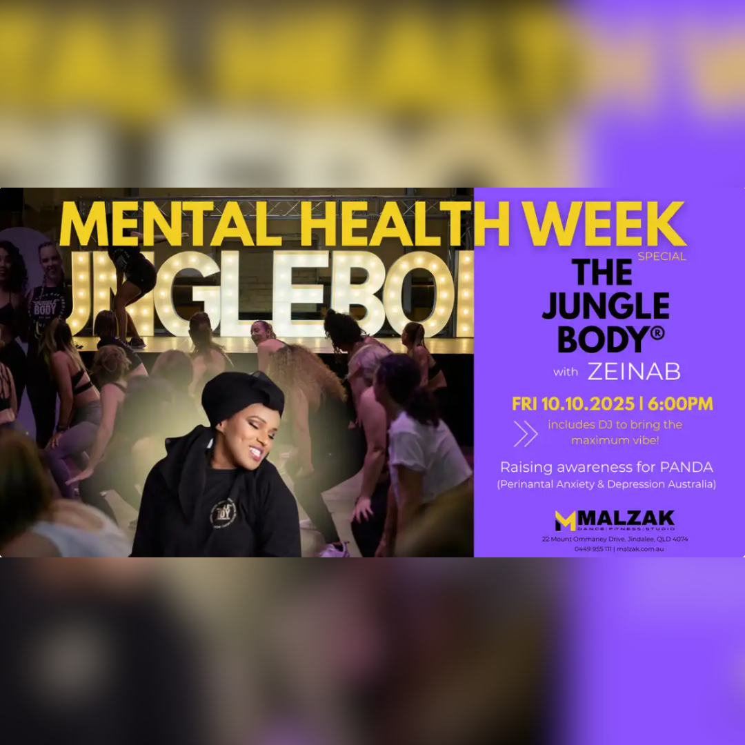 Visit WebsiteThe Jungle Body Trainer Zeinab Salah is celebrating Mental Health Week by bringing to you this special KONGA party class with a DJ raising awareness for PANDA (Perinatal Anxiety & Depression Australia).